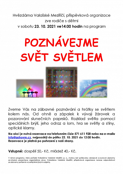 23.10. Valašské Meziříčí od 14:00 POZNÁVEJTE SVĚT SVĚTLEM