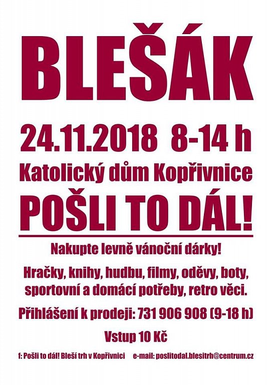 Kopřivnice 24.11.2018 od 8:00 BLEŠÁK - POŠLI TO DÁL