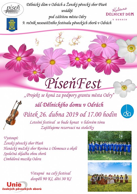 Odry 26. 4. 2019 od 17:00 PÍSEŇ FEST