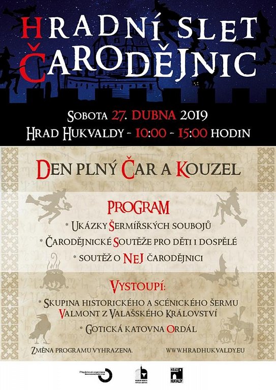 Hukvaldy 27. 4. 2019 od 10:00 do 15:00 HRADNÍ SLET ČARODĚJNIC