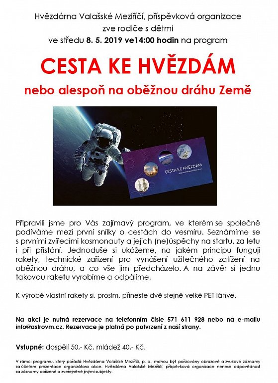 Zpříjemněte si sobotní odpoledne návštěvou hvězdárny.Přijďte si postavit a vypustit vodní raketu! A co dalšího cestou ještě zažijete?