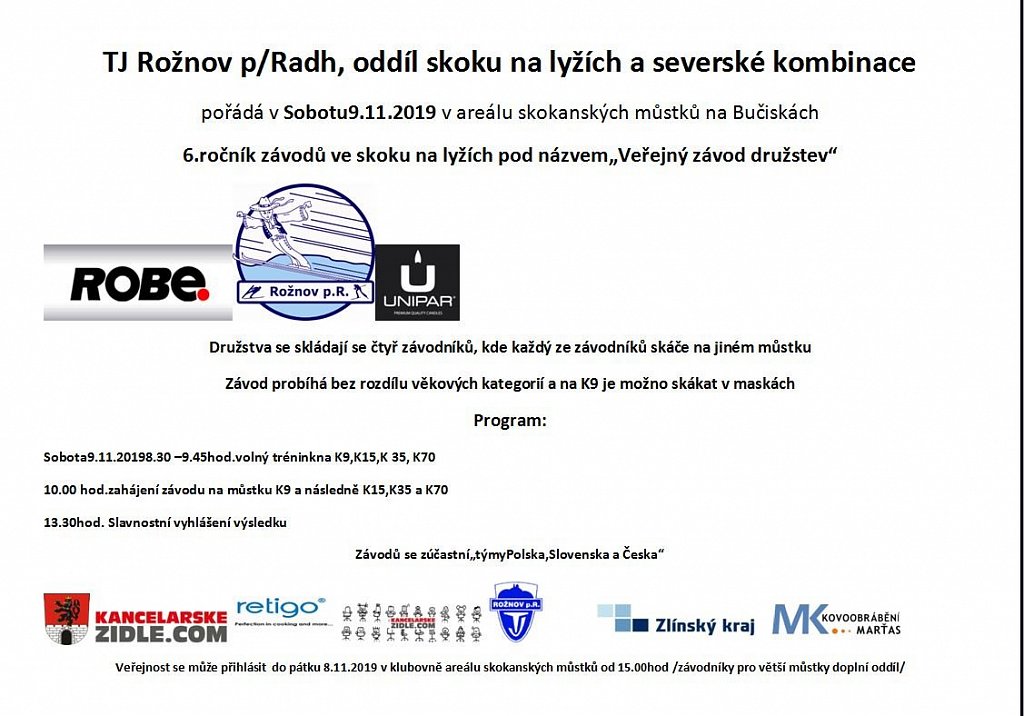 Rožnov pod Radhoštěm 9. 11. 2019 od 8:30 6. ROČNÍK ZÁVODŮ VE SKOKU NA LYŽÍCH „VEŘEJNÝ ZÁVOD DRUŽSTEV“