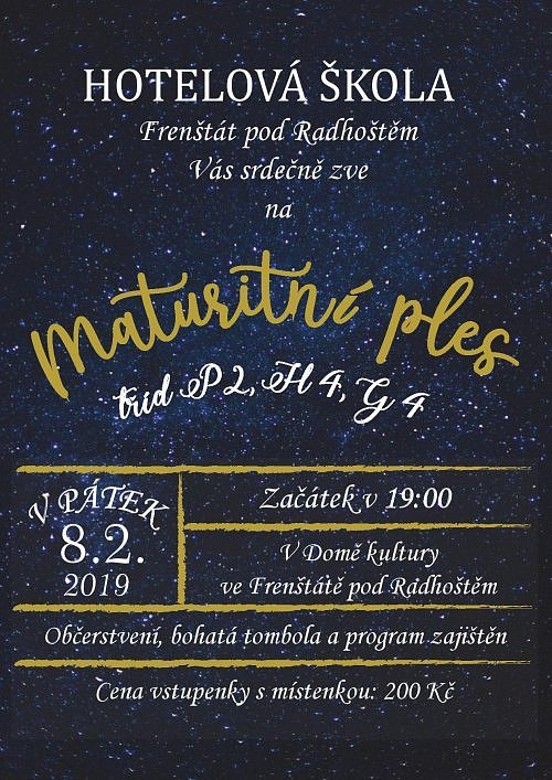 Frenštát pod Radhoštěm 8. 2. 2019 od 19:00 MATURITNÍ PLES HOTELOVÉ ŠKOLY