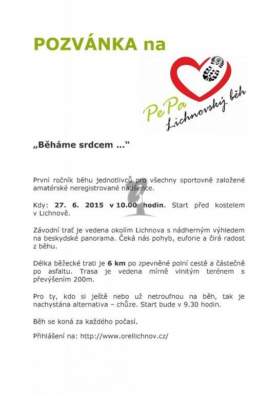 Lichnov 27. 6. 2015 v 9:30 ,,BĚHÁME SRDCEM …“ – LICHNOVSKÝ AMATÉRSKÝ BĚH PEPA