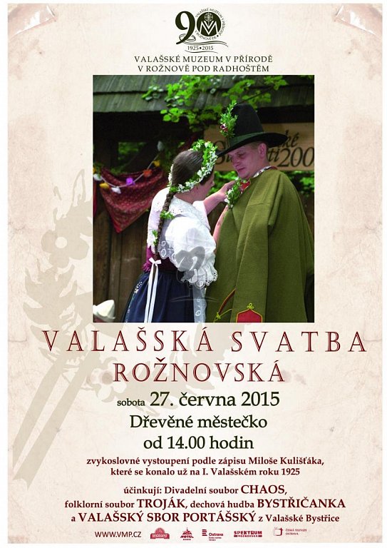 Rožnov pod Radhoštěm 27. 6. 2015 v 14:00 VALAŠSKÁ SVATBA ROŽNOVSKÁ