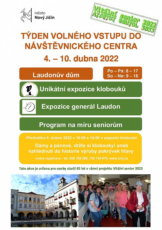 TÝDEN VOLNÉHO VSTUPU DO EXPOZIC NÁVŠTĚVNICKÉHO CENTRA od 4. – 10. dubna 2022 pro osoby starší 65 let v rámci projektu Vitální senior 2022.