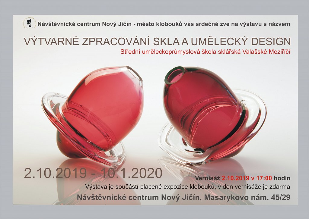 Středa 2. října 2019 – pátek 10. ledna 2020 - placená expozice klobouků Návštěvnického centra – výstava s názvem VÝTVARNÉ ZPRACOVÁNÍ SKLA A UMĚLECKÝ DESIGN. Výstava Střední uměleckoprůmyslové školy sklářské z Valašského Meziříčí.