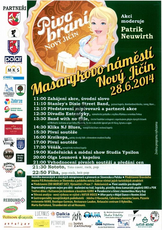 Namísto původně avizované kapely Jammy Jack vystoupí ve 21:30 kapela NOTOTO s hostem Láďou Lyskem a od 22:50 ostravská kapela FiHa, hrající na pomezí pop-rocku a brit-popu.