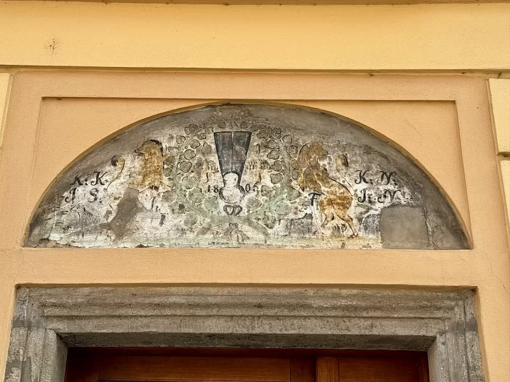 Painting on plaster in the arched niche above the entrance to the former guild house of the Novojičín soukeník.