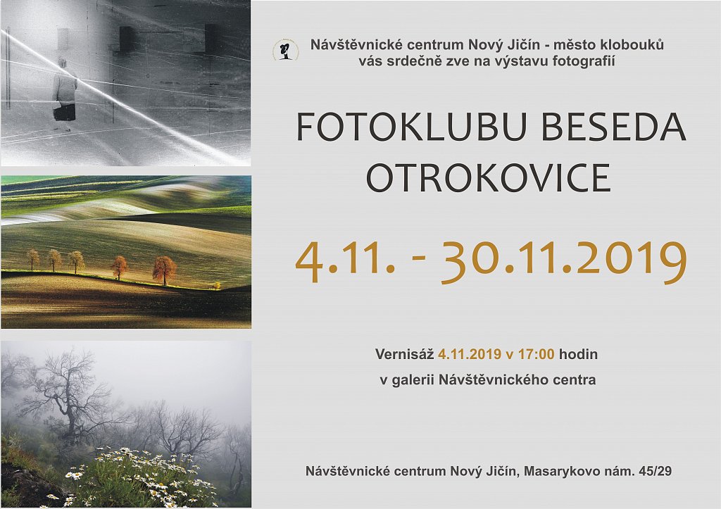 Návštěvnické centrum Nový Jičín Vás srdečně zve na vernisáž autorské výstavy fotografií Fotoklubu Beseda Otrokovice v pondělí 4. listopadu 2019 v 17:00 hodin.