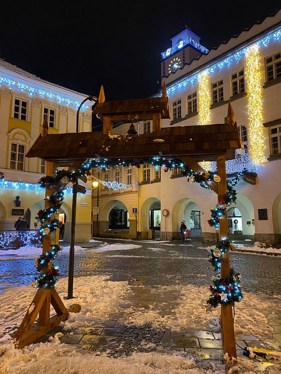 Jistě nám dáte za pravdu, když řekneme, že k nazdobenému vánočnímu stromu patří také betlém. Ani ten letos na Masarykově náměstí v Novém Jičíně nechybí. Pro město ho vyrobil mistr řezbář Jan Vincker. Betlém je z topolového dřeva a tvoří ho 10 soch, z nichž ty největší jsou přes metr vysoké. Jsou mezi nimi samozřejmě Marie, Josef a malý Ježíšek v jesličkách, obklopeni nezbytnými zvířátky, jako jsou například oslík nebo ovečky…. Mimochodem, nejvíce práce prý měl řezbář se sochou Josefa, protože je po technické stránce nejnáročnější. Betlém je umístěný pod stylovým dřevěným přístřeškem a najdete ho v blízkosti vánočního stromu. Pokud se vám líbí, klidně se u něj vyfoťte na památku!