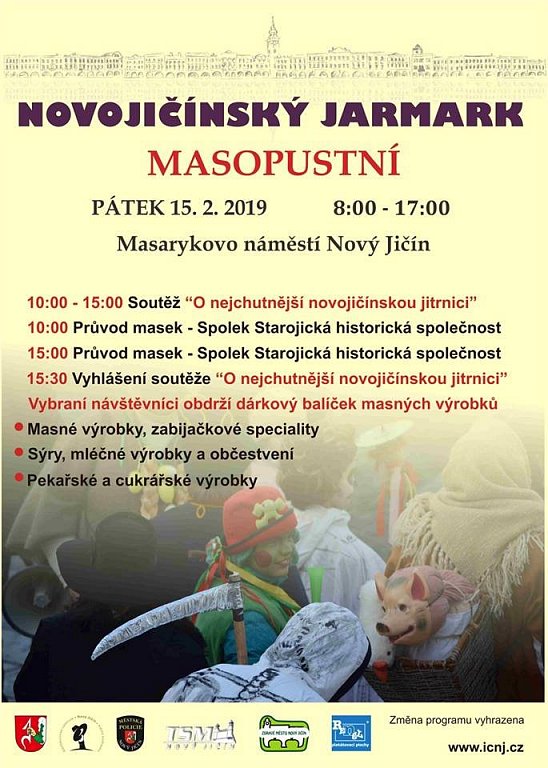 Jarmark v doprovodu masopustních masek a hudby se soutěží "O nejchutnější novojičínskou jitrnici".