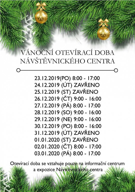 Dále sdělujeme, že ve dnech 21.12.2019 - 1.1.2020 nelze v Návštěvnickém centru Nový Jičín platit platební kartou.