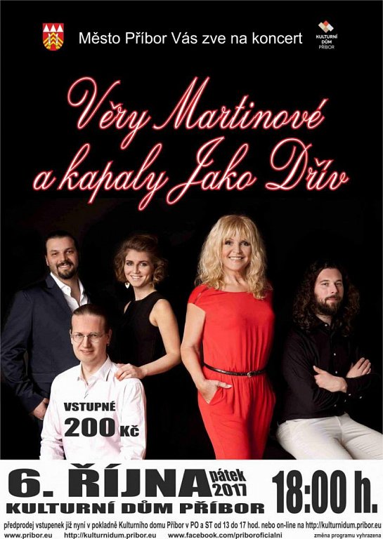Příbor 6. 10. 2017 od 18:00 KONCERT VĚRY MARTINOVÉ