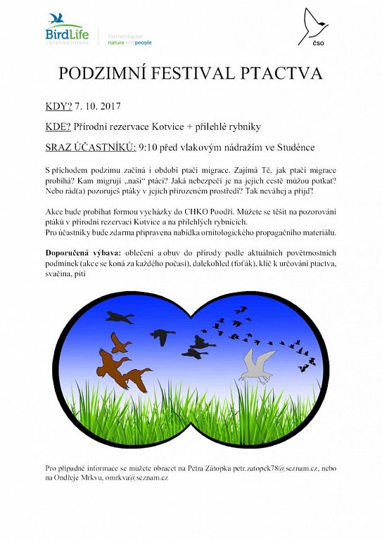Studénka 7. 10. 2017 od 9:10 PODZIMNÍ FESTIVAL PTACTVA