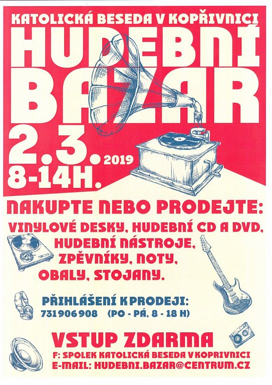Kopřivnice 2. 3. 2019 od 8:00 do 14:00 HUDEBNÍ BAZAR