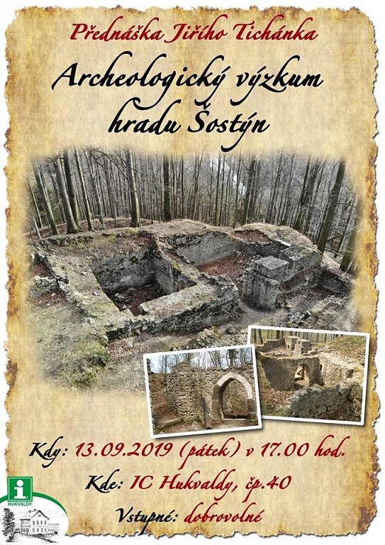 Hukvaldy 13. 9. 2019 od 17:00 PŘEDNÁŠKA ARCHEOLOGICKÝ VÝZKUM HRADU ŠOSTÝN
