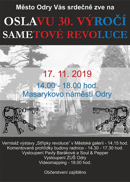 Odry 17. 11. 2019 od 14:00 OSLAVY 30. VÝROČÍ SAMETOVÉ REVOLUCE