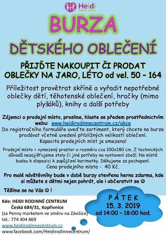 Kopřivnice 15. 3. 2019 od 14:00 do 18:00 BURZA DĚTSKÉHO OBLEČENÍ