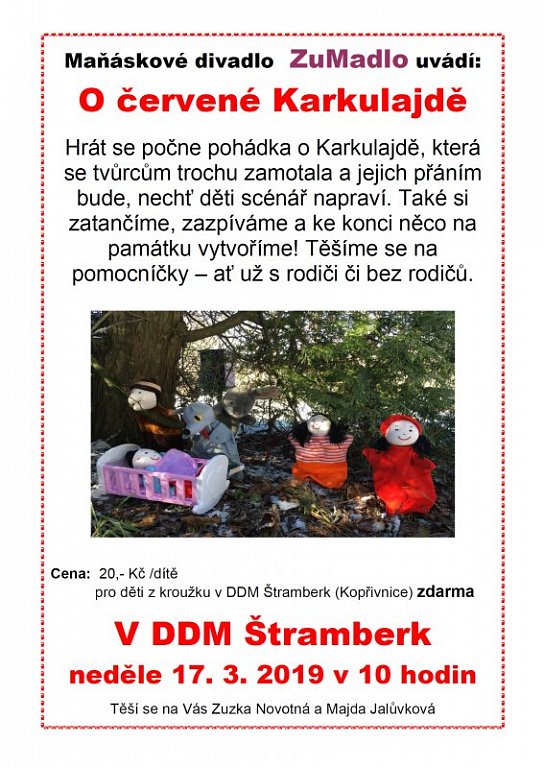 Štramberk 17. 3. 2019 od 10:00 DIVADLO: O ČERVENÉ KARKULAJDĚ