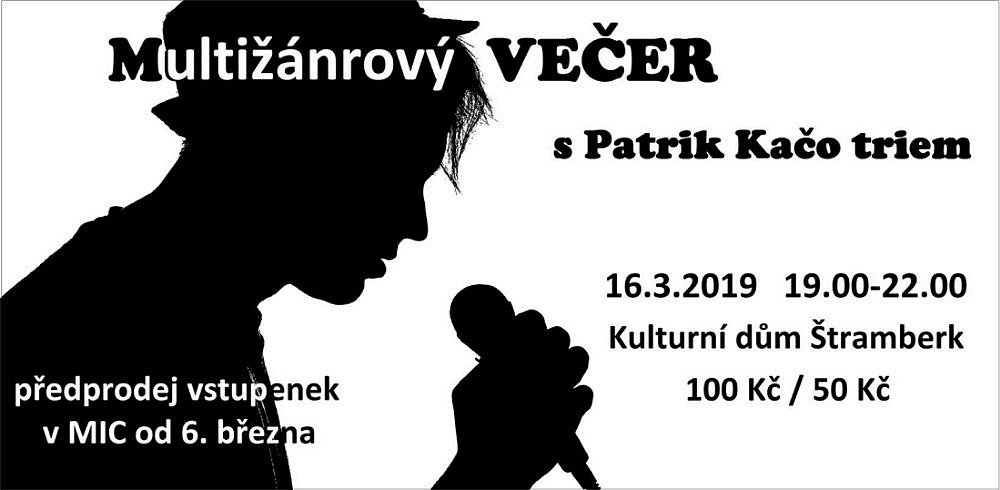 Štramberk 16. 3. 2019 od 19:00 do 22:00 KONCERT: Multižánrový večer – Patrik Kačo trio
