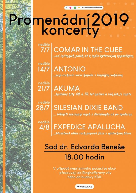 Kopřivnice 21. 7. 2019 od 18:00 PROMENÁDNÍ KONCERTY 2019
