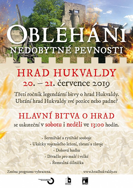 Třetí ročník legendární bitvy o hrad Hukvaldy. Ubrání hrad Hukvaldy své pozice nebo padne? Víkend plný šermu, historických zbraní, bitev a soubojů.