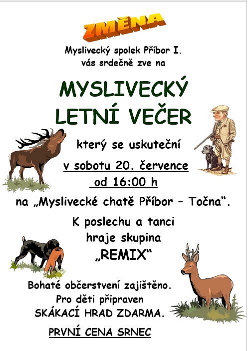 Příbor 20. 7. 2019 od 16:00 MYSLIVECKÝ LETNÍ VEČER