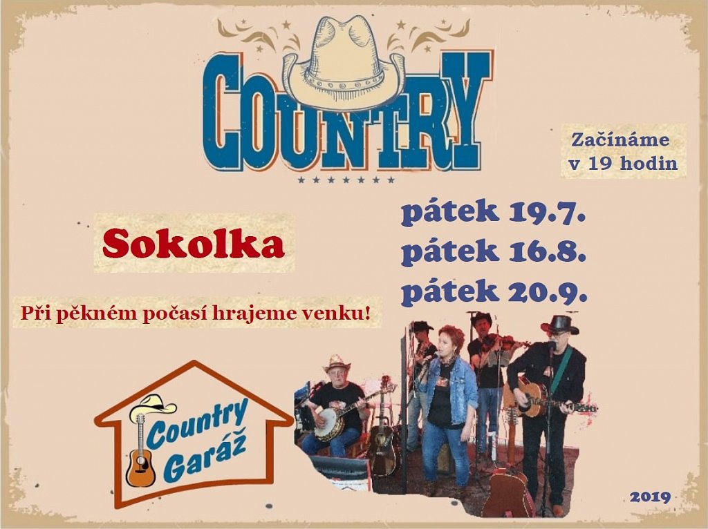 Country Garáž v Sokolce. Při pěkném počasí se hraje venku.