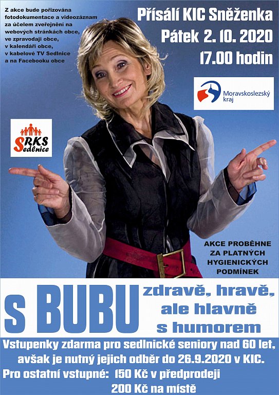 Sedlnice 2. 10. 2020 od 17:00 S BUBU ZDRAVĚ, HRAVĚ, ALE HLAVNĚ S HUMOREM