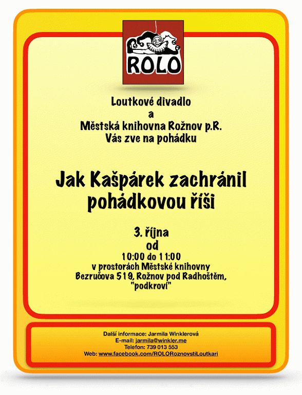Rožnov pod Radhoštěm 3. 10. 2020 od 10:00 JAK KAŠPÁREK ZACHRÁNIL POHÁDKOVOU ŘÍŠI