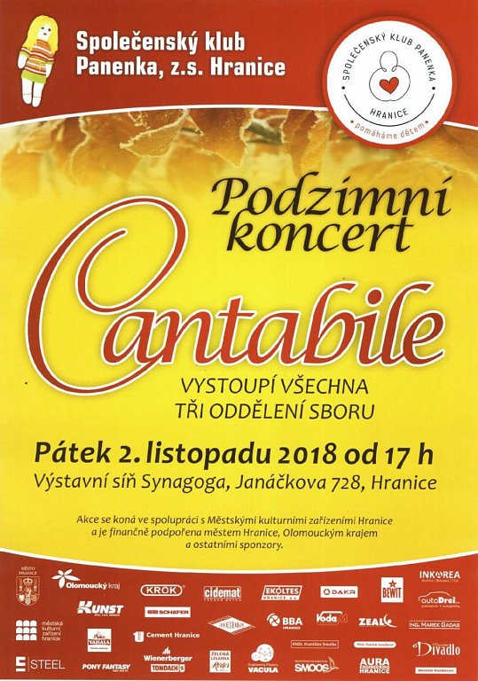 Hranice 2. 11. 2018 v 17:00 PODZIMNÍ KONCERT CANTABILE