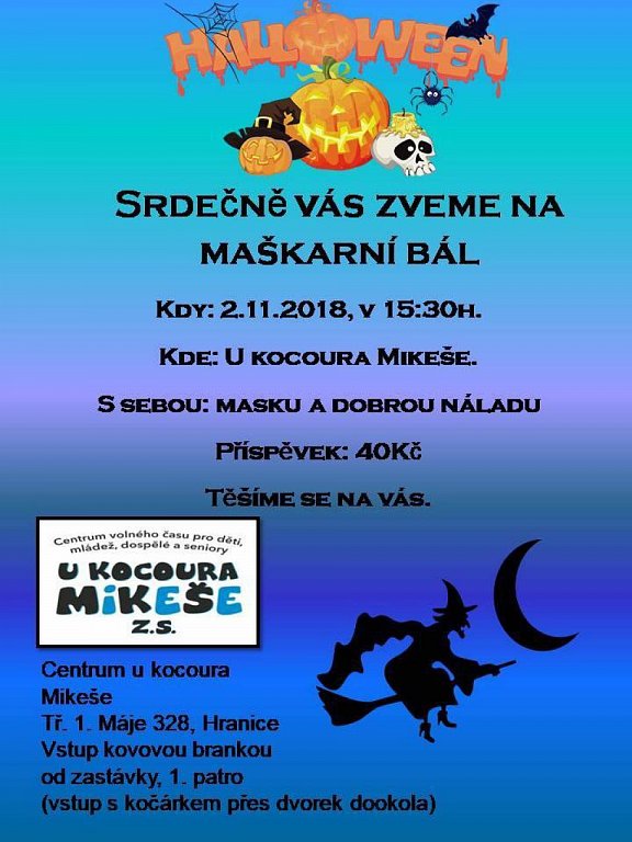 Hranice 2. 11. 2018 v 15:30 MAŠKARNÍ BÁL