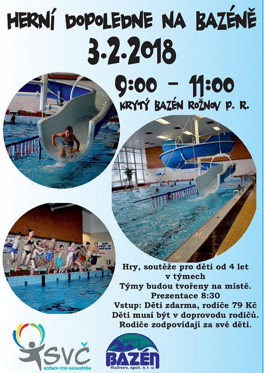 Rožnov pod Radhoštěm 3. 2. 2018 od 8:30 do 11:00 HERNÍ DOPOLEDNE NA BAZÉNĚ