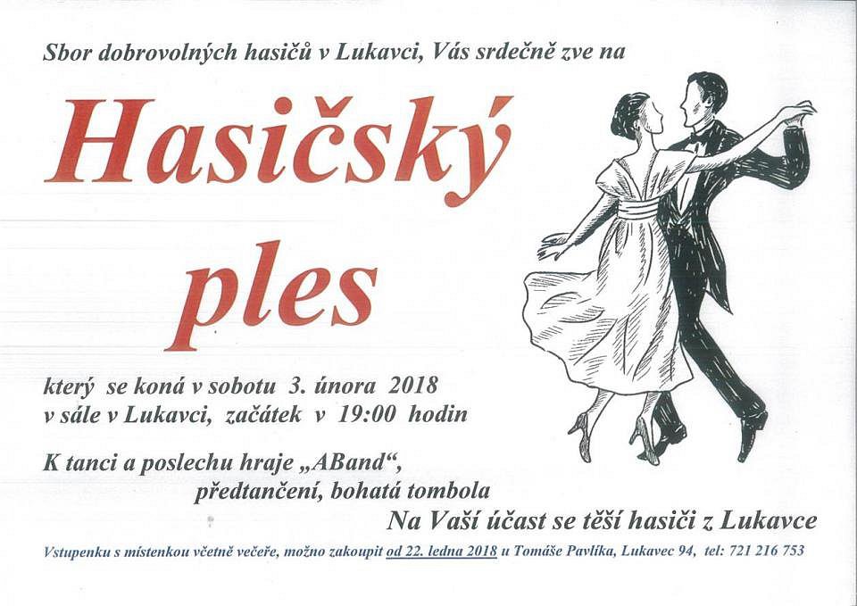 SDH Lukavec Vás srdečně zve na Hasičský ples.