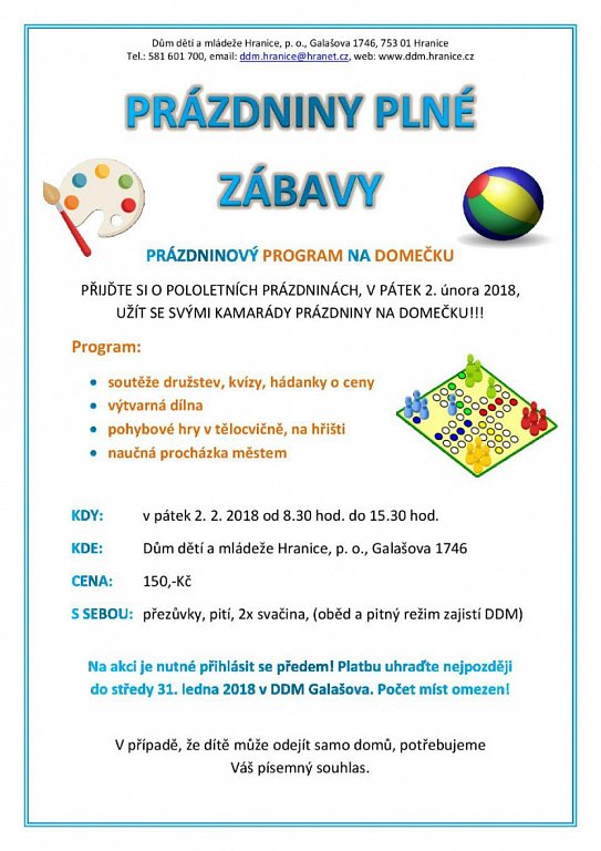 Hranice 2. 2. 2018 od 8:30 do 15:30 PRÁZDNINY PLNÉ ZÁBAVY