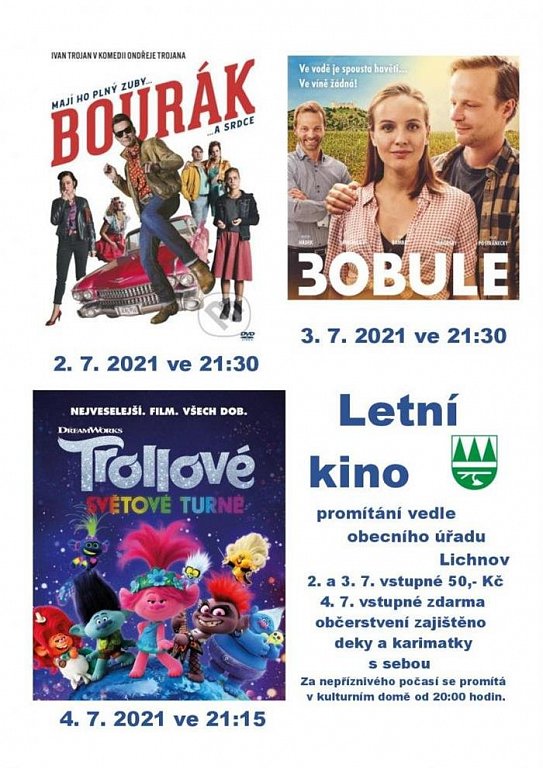 Lichnov 3. 7. 2021 od 21:30 3BOBULE – Letní kino