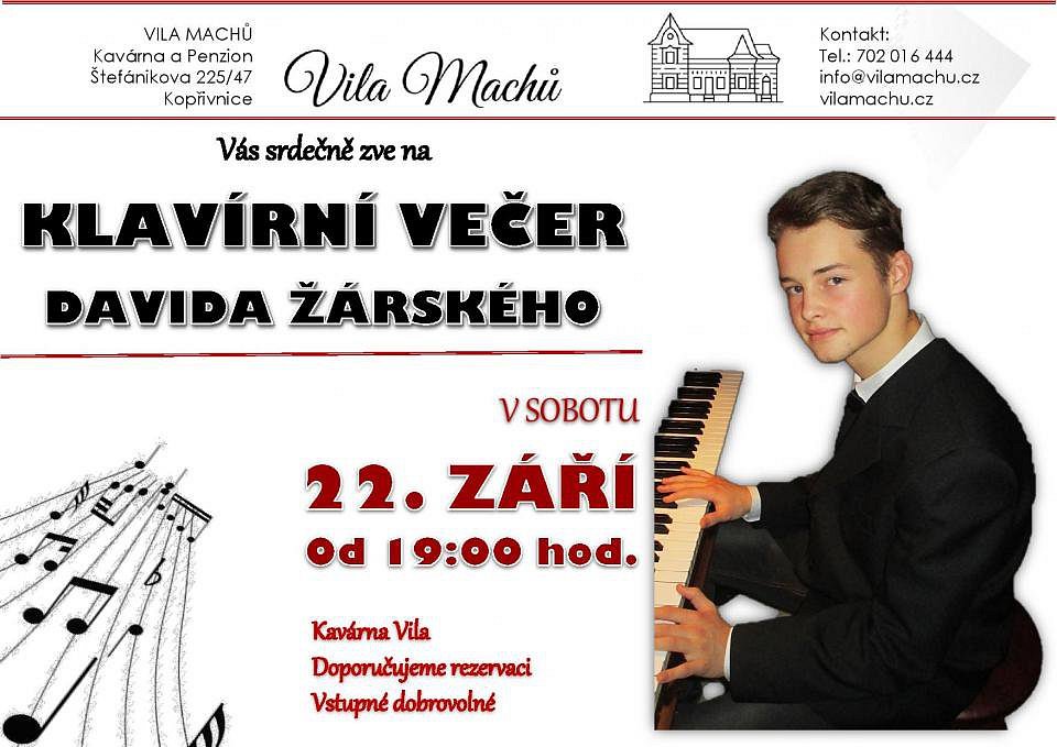 Klavírní večer mladého studenta Janáčkovy konzervatoře Davida Žárského