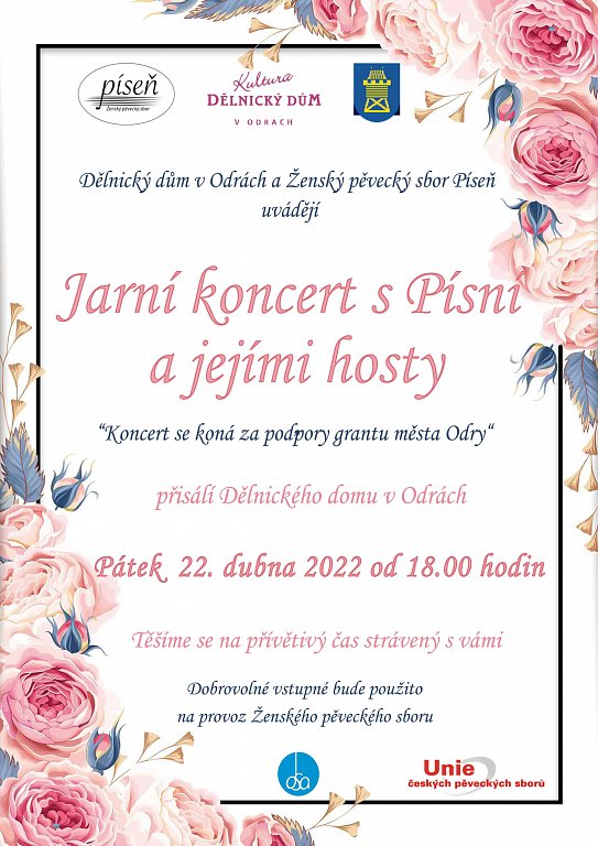Odry 22. 4. 2022 od 18:00 - JARNÍ KONCERT S PÍSNÍ A JEJÍMI HOSTY