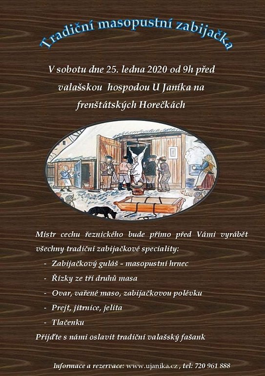Frenštát pod Radhoštěm 25. 1. 2020 od 09:00 TRADIČNÍ MASOPUSTNÍ ZABIJAČKA