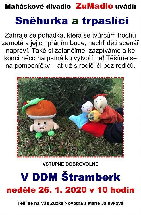 Štramberk 26. 1. 2020 od 10:00 DIVADLO ZUMADLO: SNĚHURKA A TRPASLÍCI