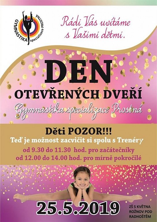 Rožnov pod Radhoštěm 25. 5. 2019 od 9:30 DEN OTEVŘENÝCH DVEŘÍ – GYMNASTIKA, PROSTNÁ
