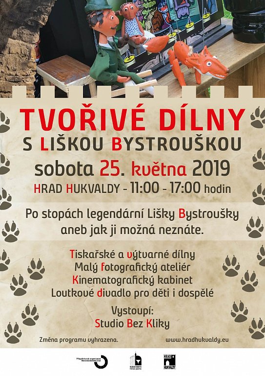 Hukvaldy 25. 5. 2019 od 10:00 TVOŘIVÉ DÍLNY S LIŠKOU BYSTROUŠKOU