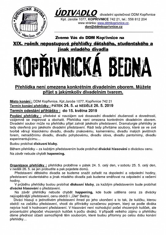 XIX. ročník nepostupové přehlídky dětského, studentského a jinak mladého divadla.