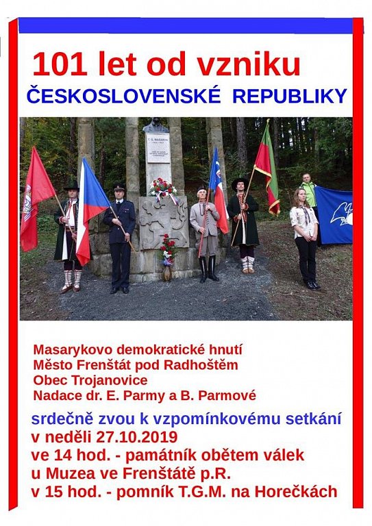 Frenštát pod Radhoštěm 27. 10. 2019 od 15:00 VZPOMÍNKOVÉ SETKÁNÍ- 101 LET OD VZNIKU ČESKOSLOVENSKÉ REPUBLIKY