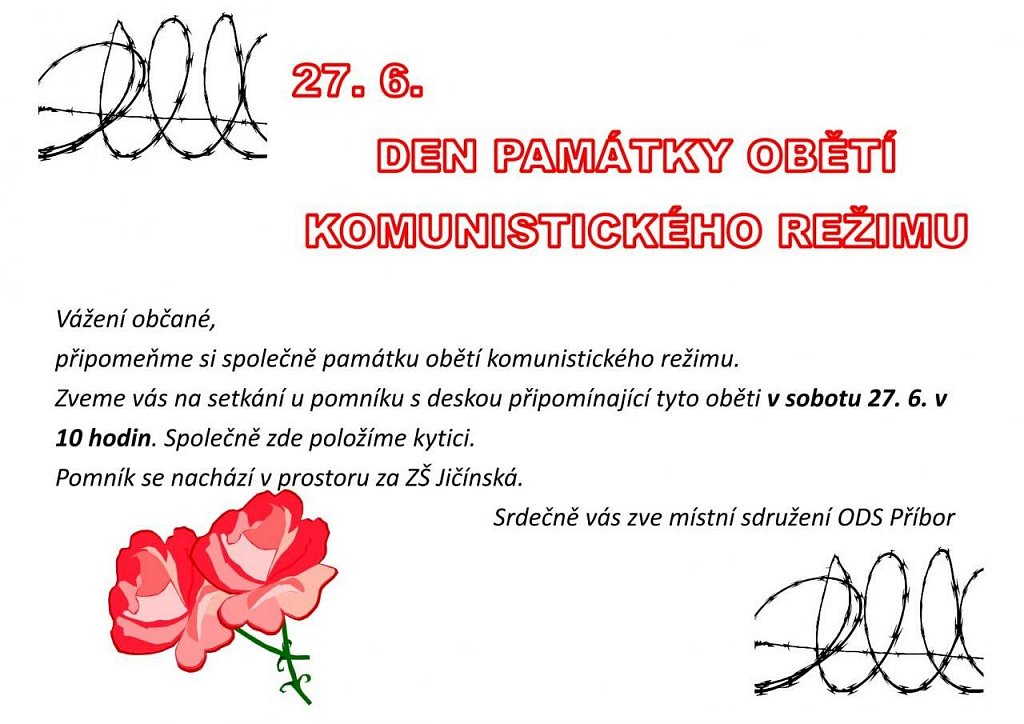 Připomeňme si společně památku obětí komunistického režimu. Srdečně vás zve místní sdružení ODS