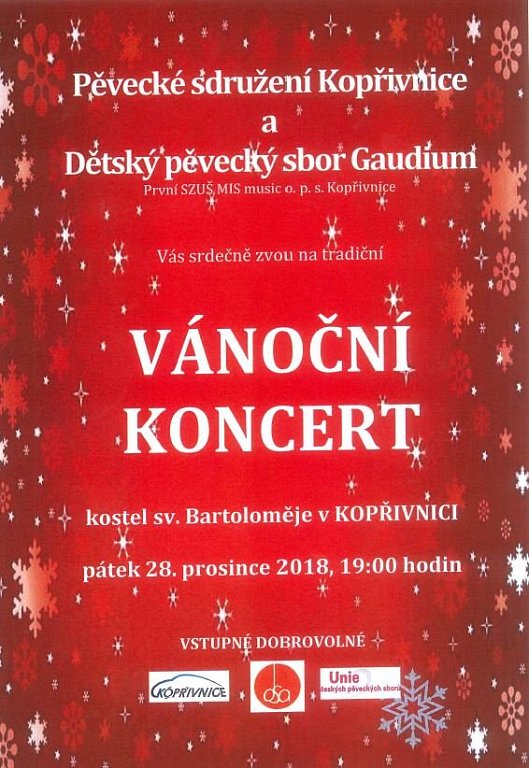 Zve Vás pěvecké sdružení Kopřivnice a Dětský pěvecký sbor Gaudium společně s Maticí Radhošťskou. Vstupné dobrovolné.