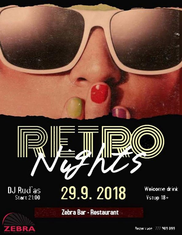 Podzim je tady a Zebra pokračuje v sérii retro koktejlových a kostýmových party 80-90 let. Vzpomínáte rádi na staré dobré časy? Říkáte si, jak rádi byste vrátili čas? Přijďte do Zebry a můžete protancovat a třeba i prozpívat celý večer nesmrtelných světových hitů let minulých. Po celý večer hraje muzika 80. a 90. let, kterou bude hrát Ruďas! Rádi vám také zahrajeme muziku podle vašeho přání. Čeká vás večer plný zábavy, krásných vzpomínek a těch největších šlágrů za posledních 30let.