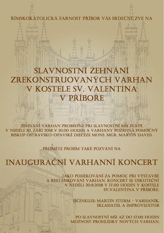Příbor 30. 9. 2018 od 10:00 SLAVNOSTNÍ ŽEHNÁNÍ ZREKONSTRUOVANÝCH VARHAN