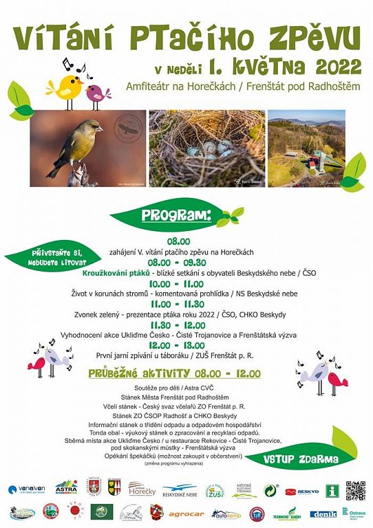 Frenštát p. R. 1. 5. 2022 od 8:00 VÍTÁNÍ PTAČÍHO ZPĚVU